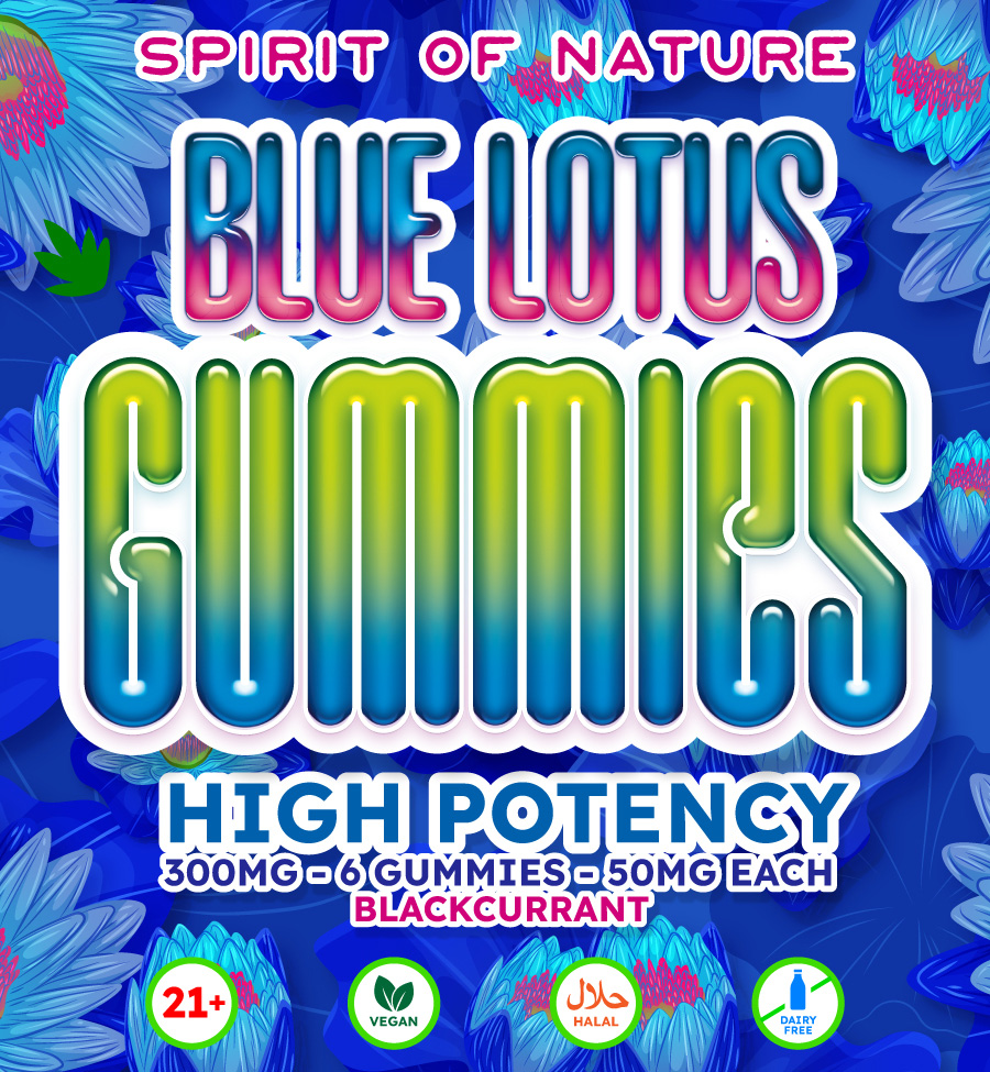 - Per gummy: 50 mg Blue Lotus extract