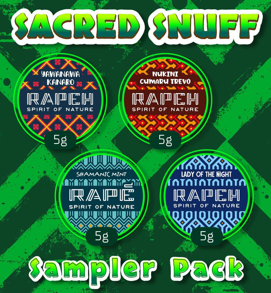 Sacred Snuff – Rapéh Sampler Pack brings together four sought-after Amazonian rapéh blends, each crafted with intention and plant knowledge passed down through generations. Rapéh has been part of Indigenous Amazonian tradition for millennia, valued for its grounding qualities and its role in personal and spiritual practices.